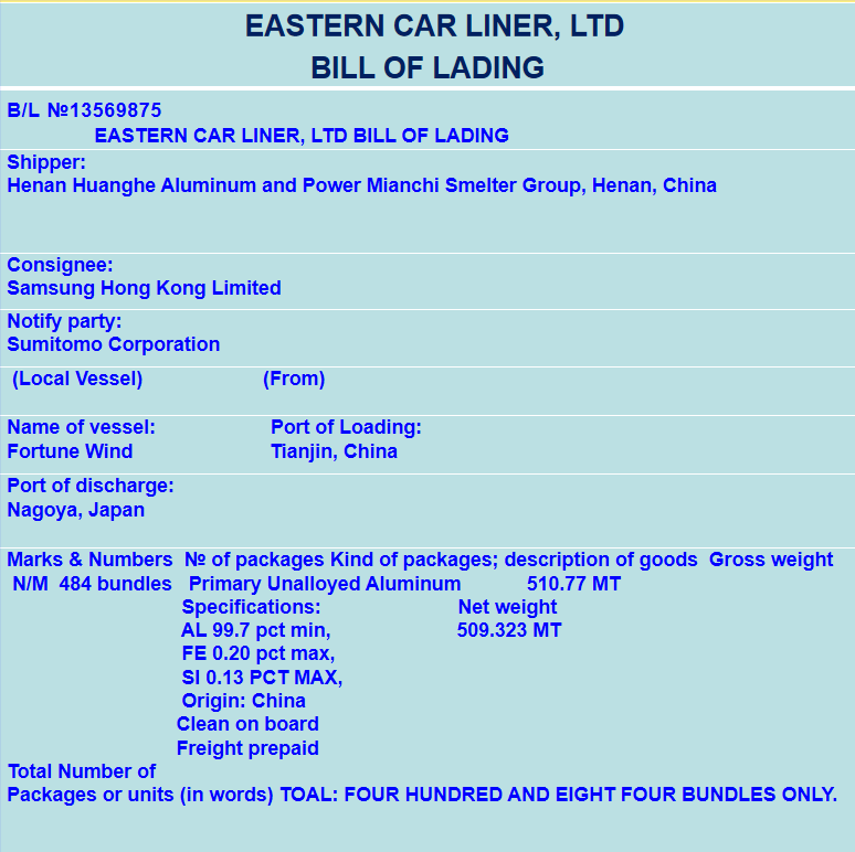 We refer to a shipment of 500 Cartoon shirts transported to Australia, which is shipped on board the vessel “Blue Sky”.