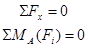 式中,Fx,Fy分别是力系中各力在任取的坐标轴x、y上的投影,注意力偶对于任一轴之投影的代数和为零,故写投影方程时不必考虑力偶。Mo(Fi)是力系中各力对任取的一点o(矩心)之矩,力矩方程中必须包括力系中所含的力偶矩。注意力偶之矩与矩心的选取位置无关,且等于组成力偶之二力对任一点之矩的代数和。