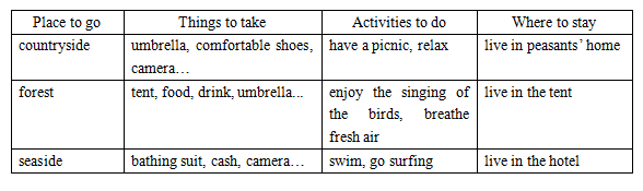 任务二:下周你和同学要外出度假,请根据提示信息讨论此次旅行计划。