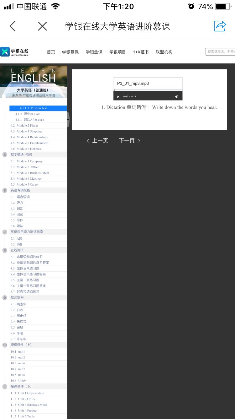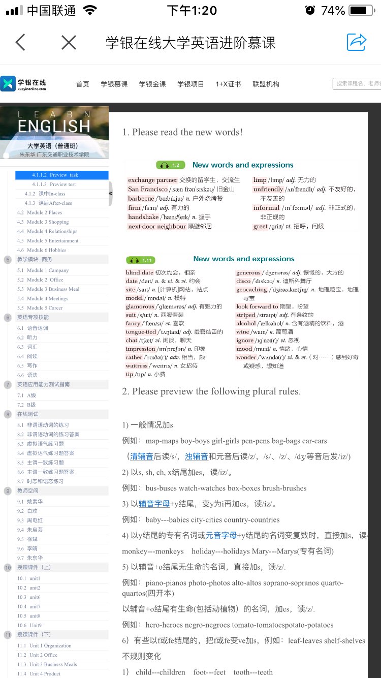 1.preview video (在资料中找到学银在线大学英语进阶慕课,如下图)听看视频。