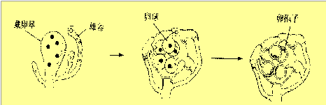 子囊:两性细胞接触以后形成的囊状结构。子囊有球形、棒形、圆筒形、长方形等,因种而异。
