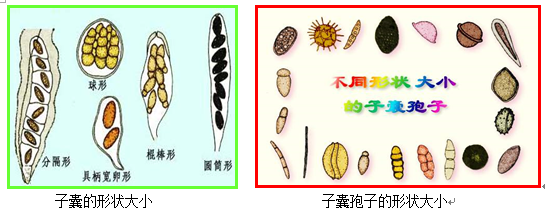 子囊内孢子通常是1-8个。子囊孢子形状、大小、颜色也各不同。