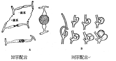 异宗配合:接合孢子的产生需要两种不同质菌系的菌丝相遇才能形成。