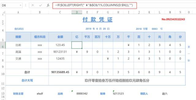 =IF($C6,LEFT(RIGHT(" ¥"&$C6/1%,COLUMNS(D:$N))),"")