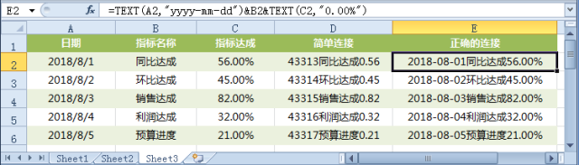 文本、日期与百分比连接