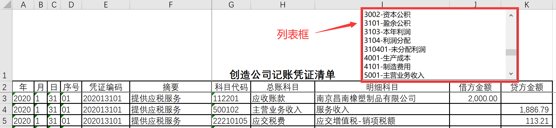 通过8.2,我们共同建立了南京司立韵货运代理有限公司的期初科目余额表。现在,我们要根据其2020年1月份发生的经济事项来编制记账凭证,但为了方便后期打印记账凭证,现在我们需要将整个月的记账凭证汇总在一张清单里,如下图所示: