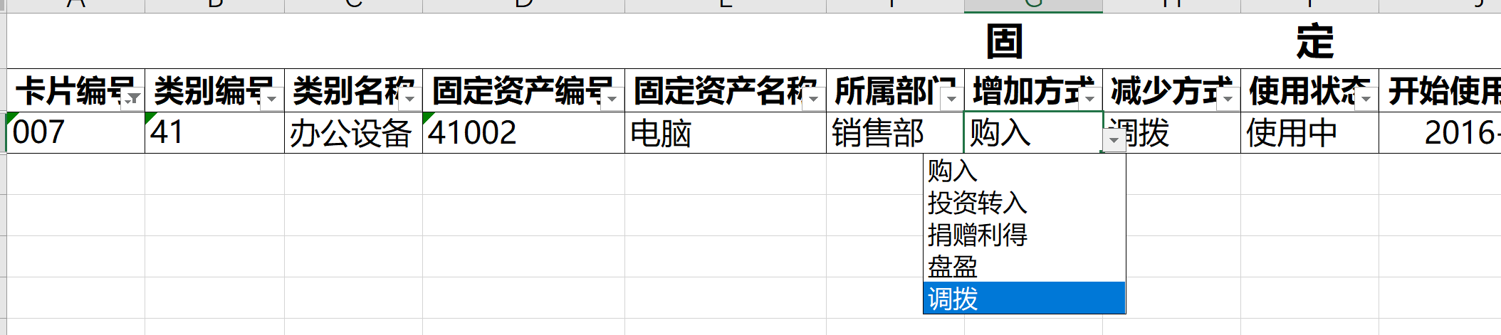 为了保障固定资产卡片的数据规范性,我们需要使用【数据验证/数据有效应】功能来规范化数据录入,使用该功能前,我们要制作前期的准备资料。