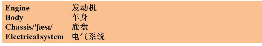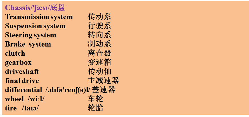 The major systems of an automobile are the engine, fuel system, transmission,electrical system, cooling and lubrication system, and the chassis, whichincludes the suspension system, braking system, wheels and tires, and the body.These systems will be found in every form of motor vehicle and are designed tointeract with and support each other.
