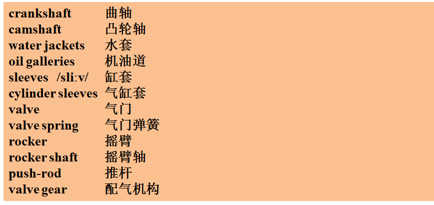 Someengine blocks, especially those in smaller cars, are made of cast aluminum.This metal is much lighter than iron. However, iron wears better than aluminum.Therefore, the cylinders in most aluminum engines are lined with iron or steelsleeves. These sleeves are called cylinder sleeves. Some engine blocks are madeentirely of aluminum.