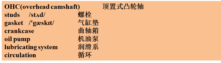 The cylinder head fastens to the top of the block, just as a roof fits over a house.The underside forms the combustion chamber with the top of the piston. The mostcommon cylinder head types are the hemi, wedge, and semi-hemi. All three ofthese terms refer to the shape of the engine's combustion chamber. The cylinderhead carries the valves, valve springs and the rockers on the rocker shaft,this part of the valve gear being worked by the push-rods. Sometimes thecamshaft is fitted directly into the cylinder head and operates on the valveswithout rockers. This is called an overhead camshaft arrangement. Like thecylinder block, the head is made from either cast iron or aluminum alloy.