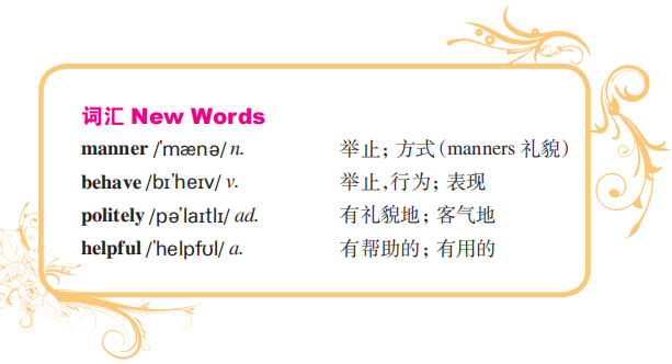 We say that a person has good manners if he or she behaves politely and is kind and helpful to others. Everyone likes a person with good manners, but what are good manners?