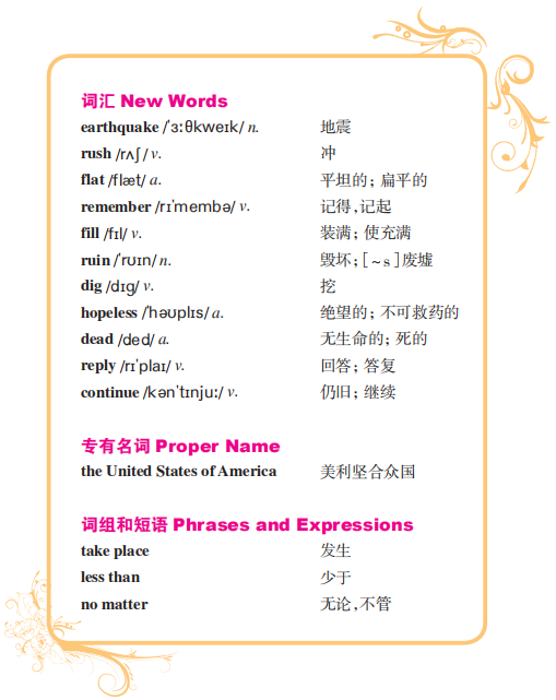 2. A father rushed to his son’s school, only to find that the building was as flat as a pancake. 一位父亲冲向他儿子的学校,目之所及的只有被夷为平地的校园。