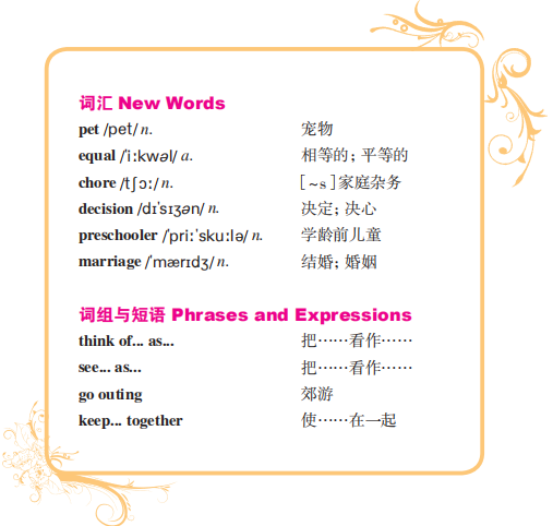 In American homes, each member is equal. Husbands and wives often share house chores. Children may think of their parents as good friends. From an early age, children learn how to deal with money. They may receive pocket money or even work part-time jobs. Often parents let children make their own decisions. Preschoolers choose what clothes to wear or which toys to buy. Young adults decide on what job to do and whom to marry.
