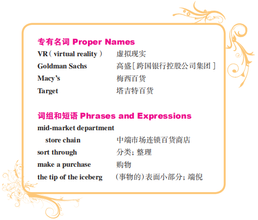 1. Shopticals: 一种定制的购物头显设备,佩戴定制的Shopticals VR头显后,用户登录相应APP,首次购买前设置购物兴趣,然后商店会根据用户偏好进行定制设计。用户可通过活动头部和眼部进行浏览,仅需盯着物品几秒钟即可选定商品,同时产品的详细规格信息也将一览无余。
