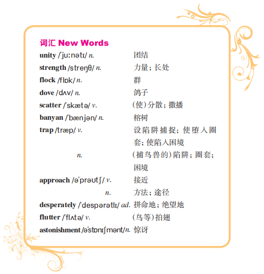 The mouse agreed, saying that he would set the king free first. The king insisted that he first free his subjects and the king last.1 The mouse understood the king’s feelings. He began to cut the net, finally all the doves were freed including the dove king.