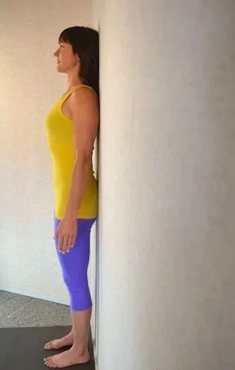 体式山式,在家可以靠墙练习,确保身体在同一个平面,不仅可以有效的改善头前倾、圆肩驼背、骨盆不中正等体态问题,而且当身体习惯了正确的站姿,在日常生活中无需靠墙也能身姿挺拔,有效改善体态。