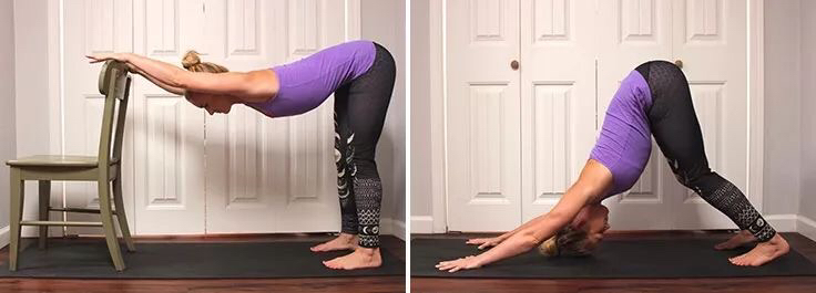 初学者可以借助瑜伽砖/瑜伽椅/墙壁做练习: