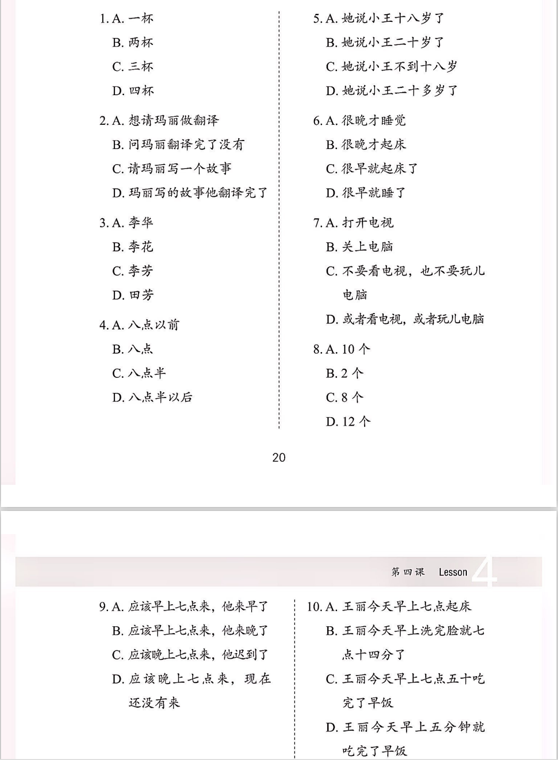 一 听下列句子,选择正确答案。Listen to the following sentences and choose the correct answers.