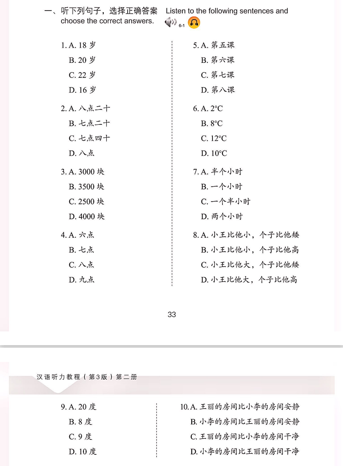 一 听下列句子,选择正确答案。Listen to the following sentences and choose the correct answers.