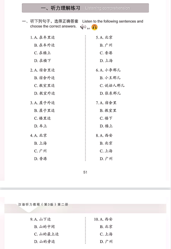 听下列句子,选择正确答案 Listen to the following sentences and choose the correct answers