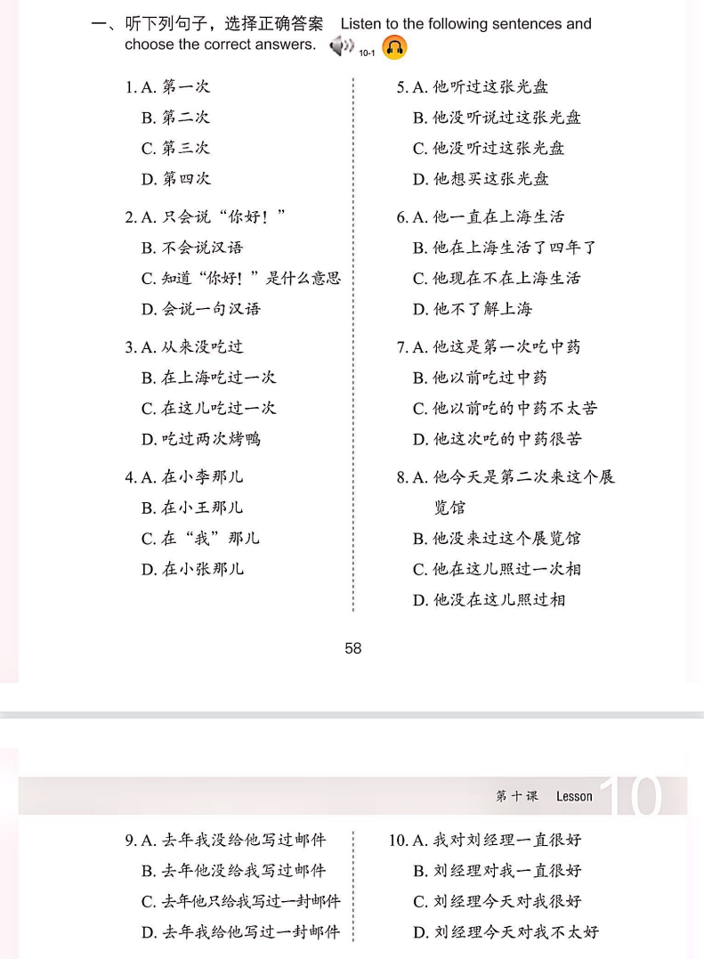 听下列句子,选择正确答案 Listen to the following sentences and choose the correct answers