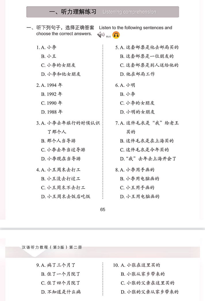 听下列句子,选择正确答案 Listen to the following sentences and choose the correct answers