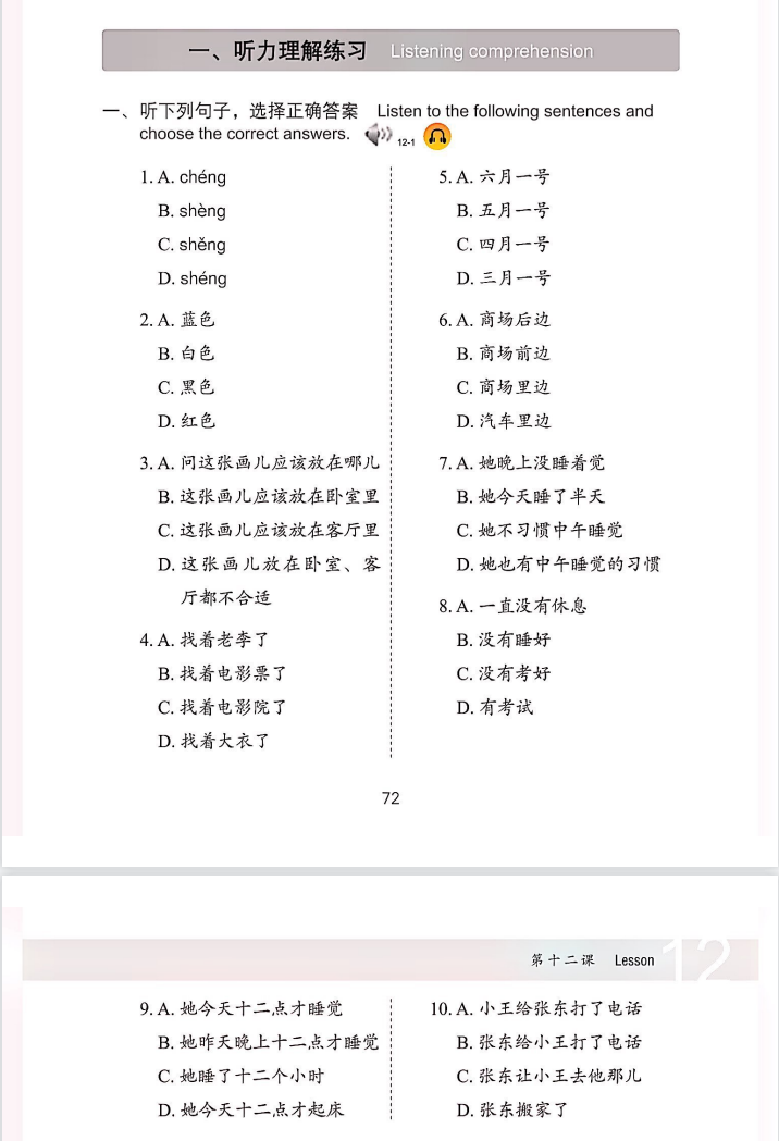 • 12.1 一 听力理解练习 听下列句子,选择正确答案