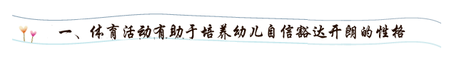 许多家长也向我反映,他的孩子在幼儿园不仅身体方面得到发展,更重要的是人也变得活泼、健谈起来。这也许是幼儿积极参与体育活动的益处的体现吧。