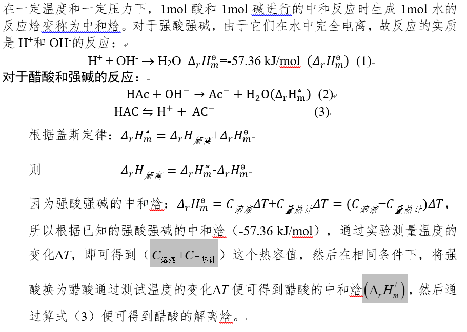 中和焓的测定-利用酸碱反应的中和焓测试醋酸的解离焓