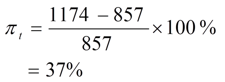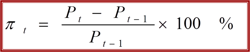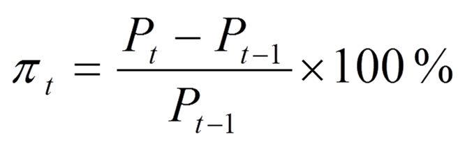 通货膨胀率:为从一个时期到另一个时期物价水平变动的百分比。