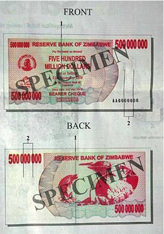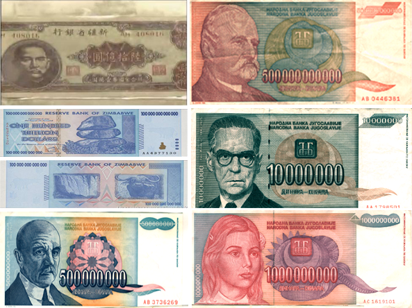 2009年1月16日,津央行发行面值为10万亿、20万亿、50万亿和100万亿的巨额钞票
