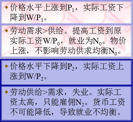 工人会对工资的下降进行抵抗,工资只能上升,不能下降。但由于货币幻觉,工人会抵抗价格水平不变下的货币工资的下降,却不会抵抗货币工资不变下价格水平的提高。