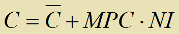 简单的“NI-AE”模型是指不存在政府和国外部门,只有家庭和企业私人部门的宏观经济模型,目的是说明国民收入决定的基本原理。消费C是个人可支配收入DI的函数,而个人可支配收入等于国民收入减去净税收(即DI=NI-NT),现在假定没有政府,因此净税收等于0。个人可支配收入等于国民收入,DI=NI-0=NI;