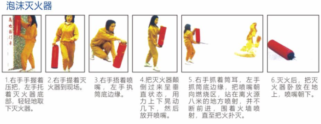 正确使用泡沫灭火器的步骤: