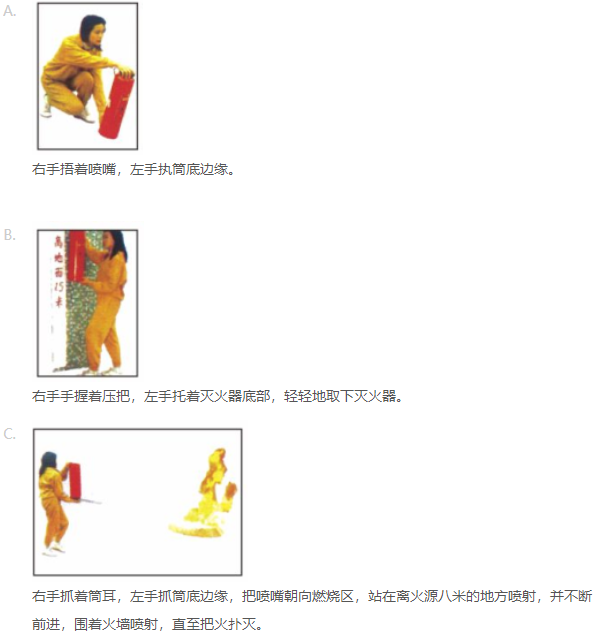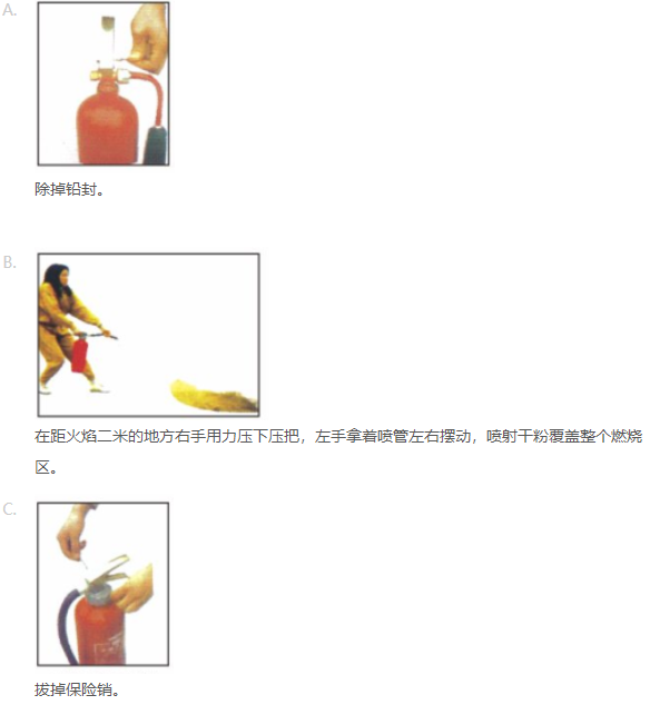 正确使用干粉灭火器的步骤: