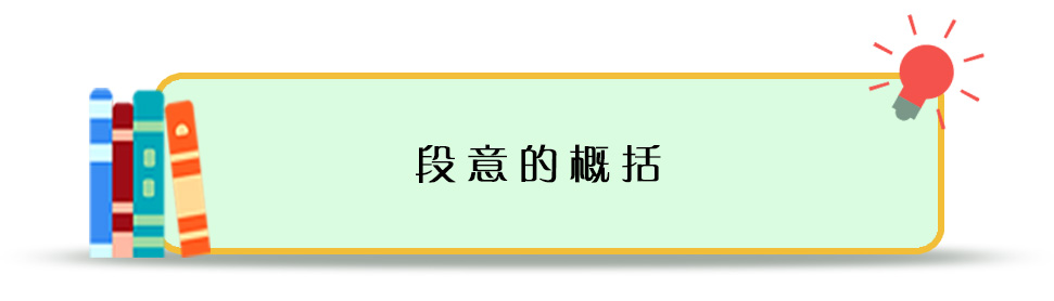 概括段意最常见的方法是摘句法。摘句法就是把能概括全段内容的句子摘出来,作为段落大意。这种方法,一般适用于有中心句的段落。总起句、总结句、过渡句都可以充当中心句。通常,过渡句的后半句可以概括下文内容。