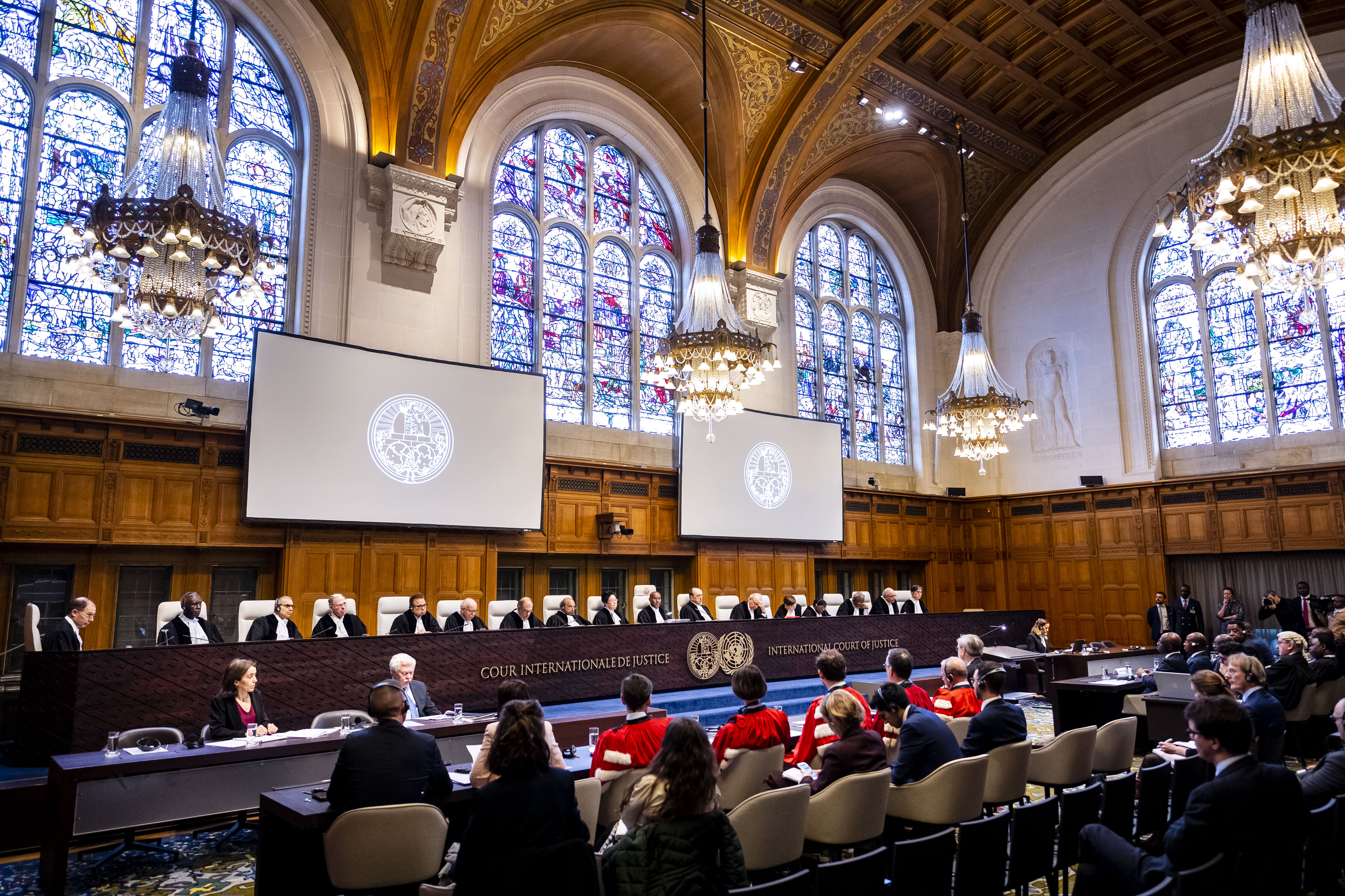 The Court is composed of 15 judges, who are elected for terms of office of nine years by the United Nations General Assembly and the Security Council. It is assisted by a Registry, its administrative organ. Its official languages are English and French.