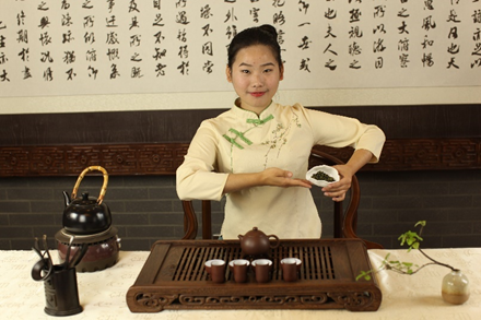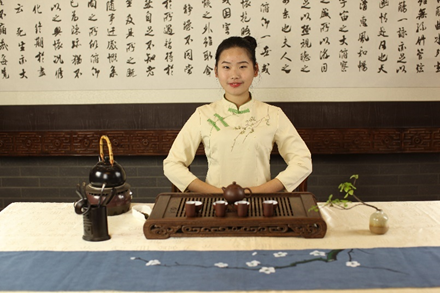 下面我们分别选择一套使用紫砂壶和盖碗为主泡器冲泡乌龙茶的操作方法进行实训操作练习,实训练习用茶选用武夷岩茶和铁观音。