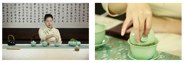 8、敬茶——春花倚绿问君意,一盏香茗奉知己。