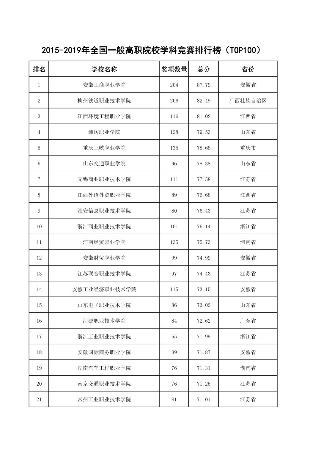 在中国高等教育学会发布的“2015-2019全国一般高职院校学科竞赛排行榜”中,学校位居全国第