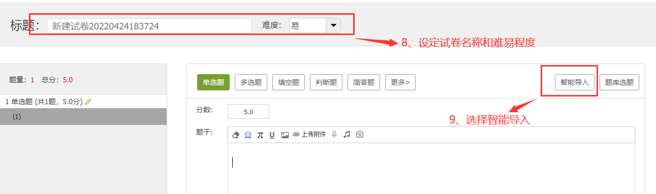 没有题库是否可以直接建设试卷?可以的,就是手动一个个添加题目,或按照智能模板的格式编辑好之后一键识别导入,完成创建。