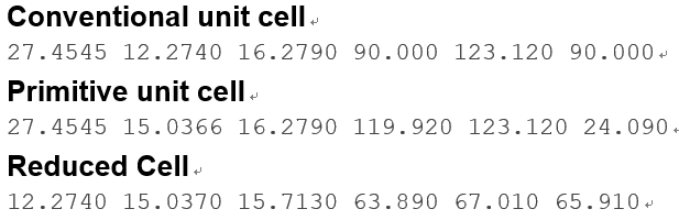 reduced cell是属于14种布拉维格子种的P格子,而且需要满足两个条件:1)最短的晶轴;2)a <= b <= c,and all angle either < 90 or >= 90。