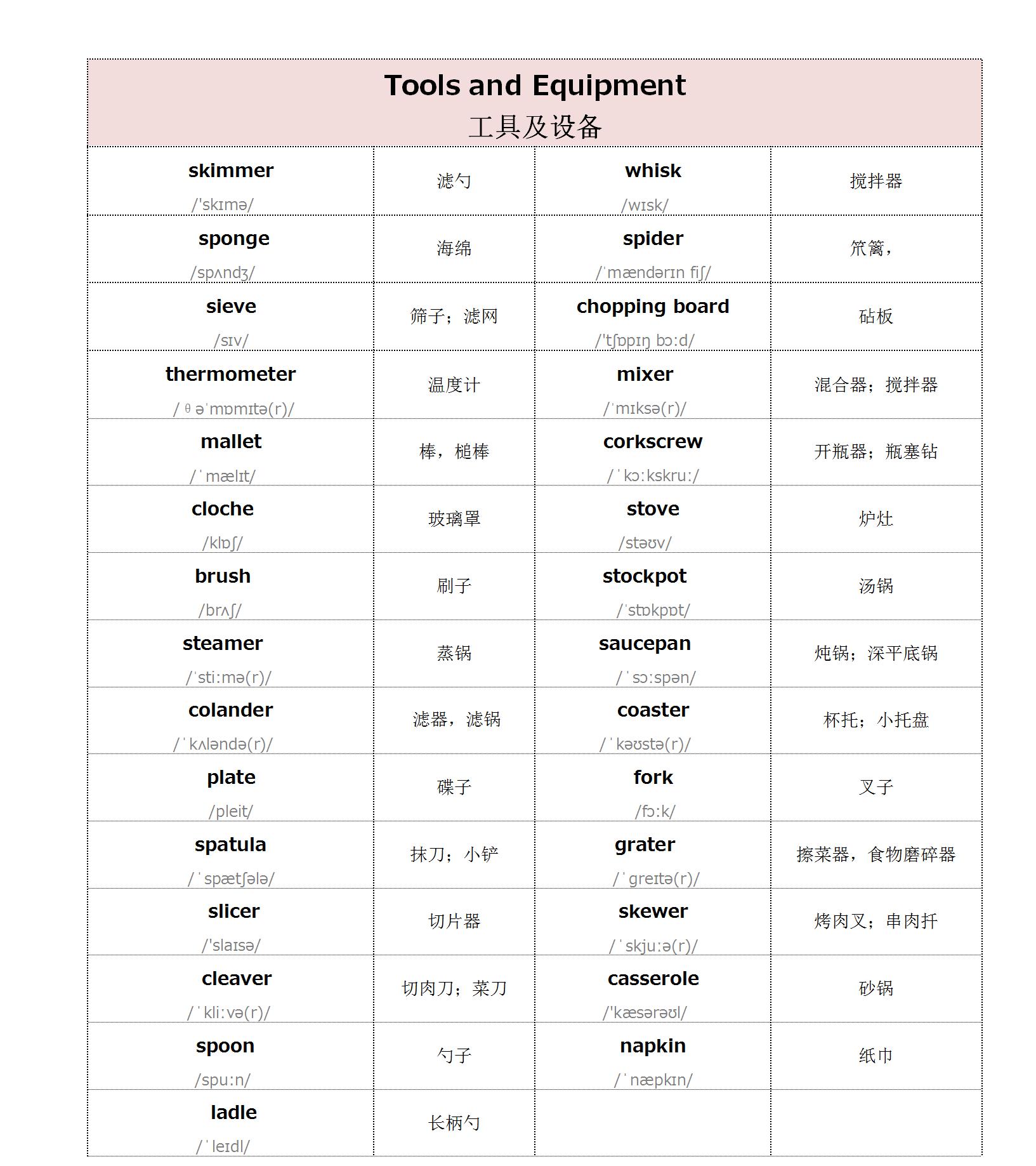 9 Unit 2 专业厨房的工具和设备 Tools and Equipment in the Professional Kitchen