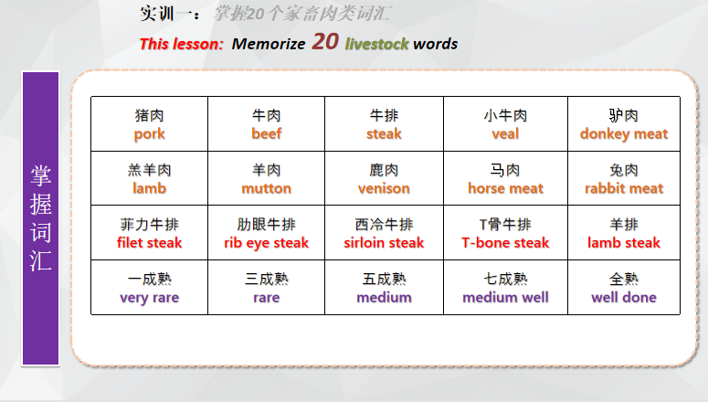 filet steak | rib eye steak | sirloin steak | T-bone steak | lamb steak |