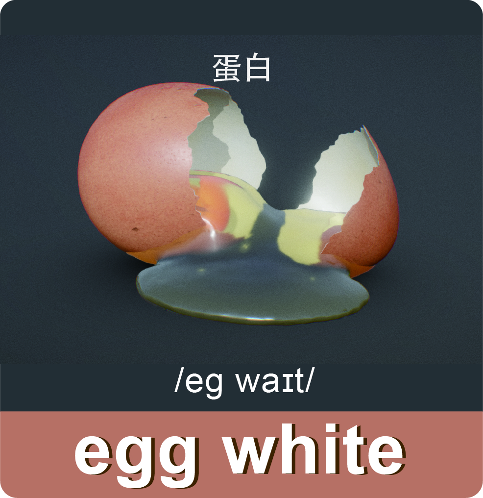 蛋黄 | yolk /jəʊk/ | 蛋白 | egg white /eg waɪt/ |