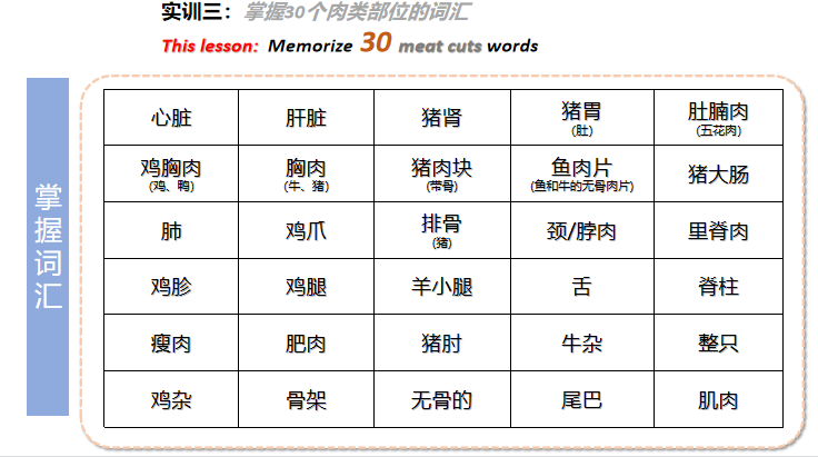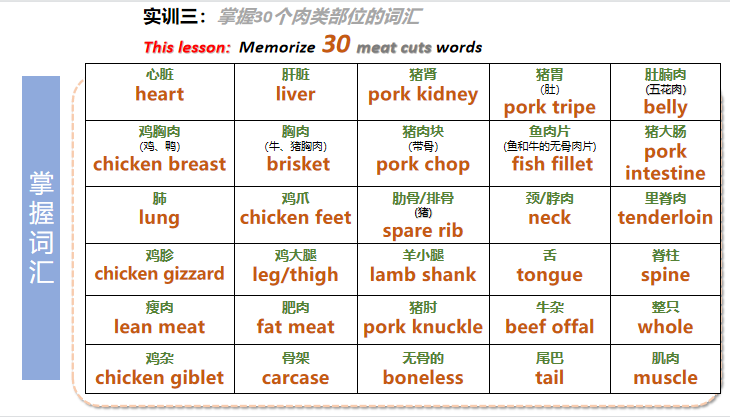 实训三:肉的不同切块 Different cuts of meat