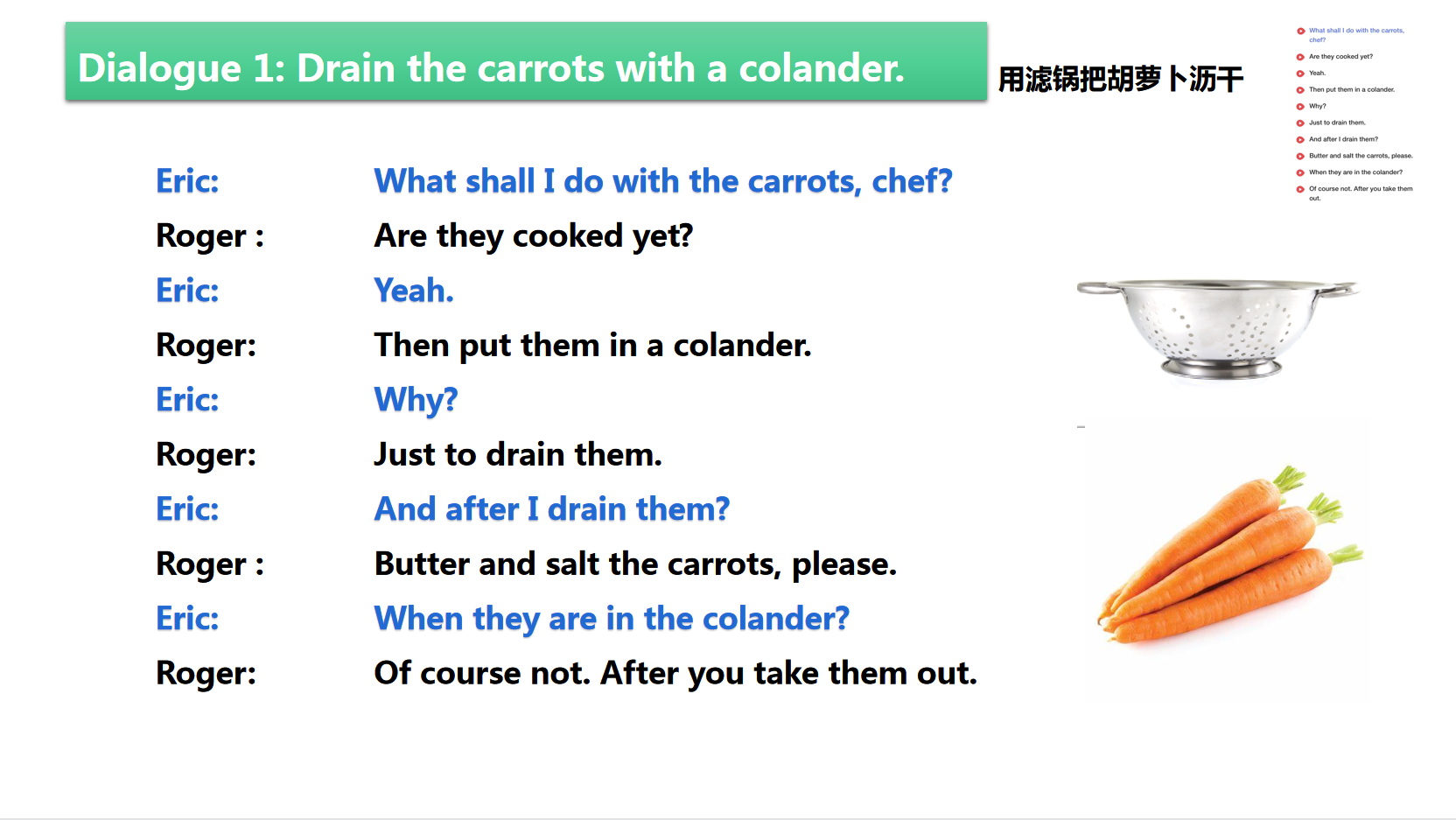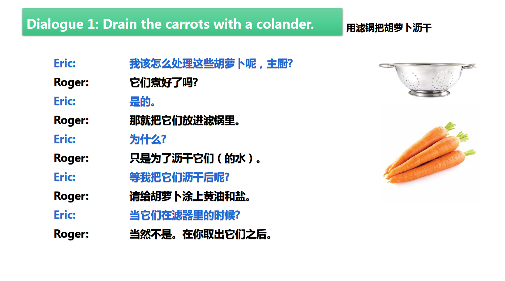 • 9.1 D1:用滤锅把胡萝卜沥干 Drain the carrots with a colander