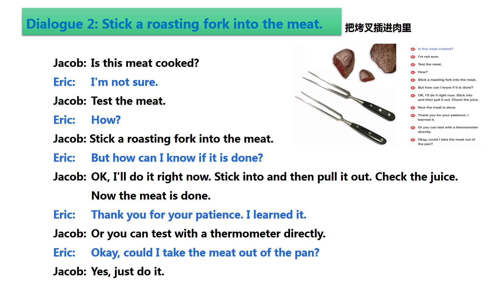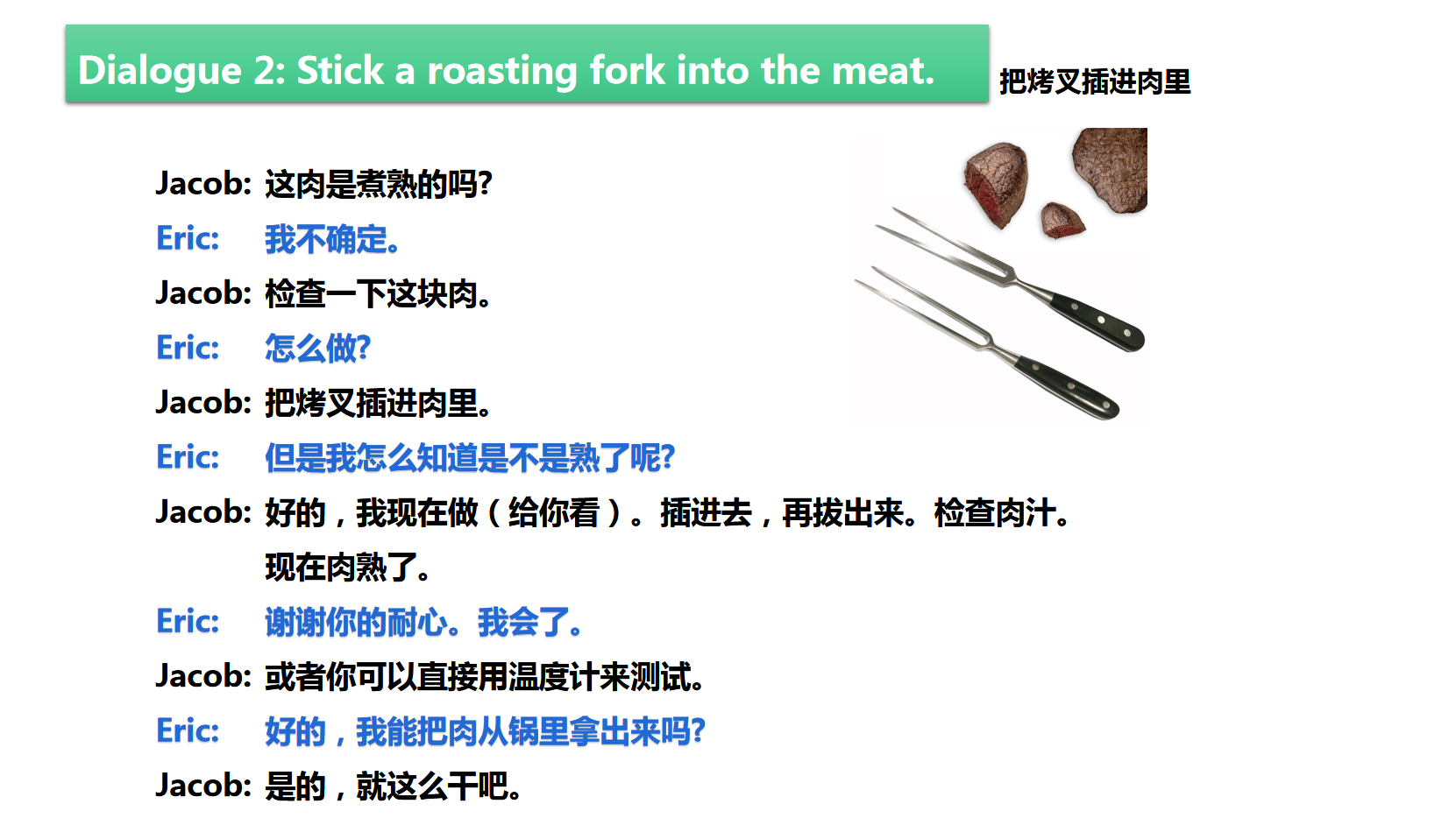 • 9.2 D2:把烤叉插进肉里 Stick a roasting fork into the meat