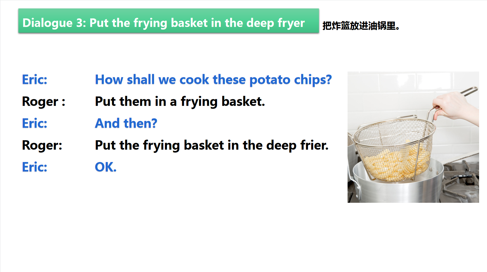 • 9.3 D3:把炸篮放进油锅里 Put the frying basket in the deep fryer