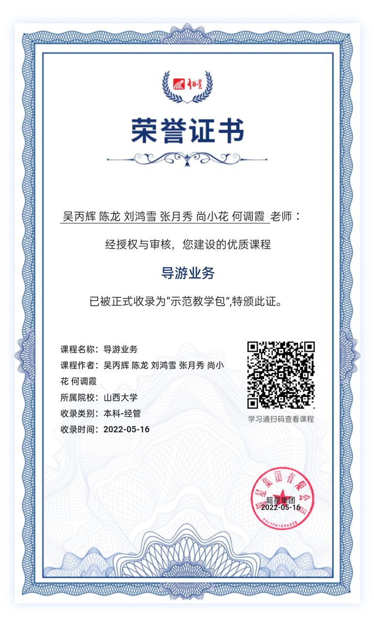 选修课报名通道:https://mooc1.chaoxing.com/course/225522143.html 《导游业务》第4期超星在线开放课程